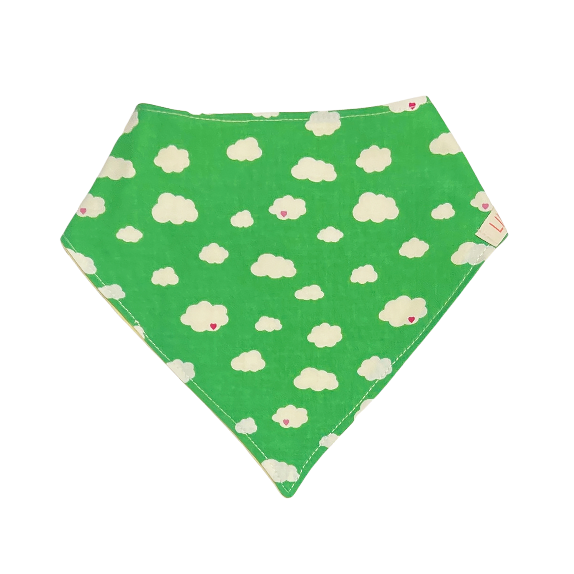 this bandana bib is made with 100% cotton novelty fabric with flannel on the back with snap.