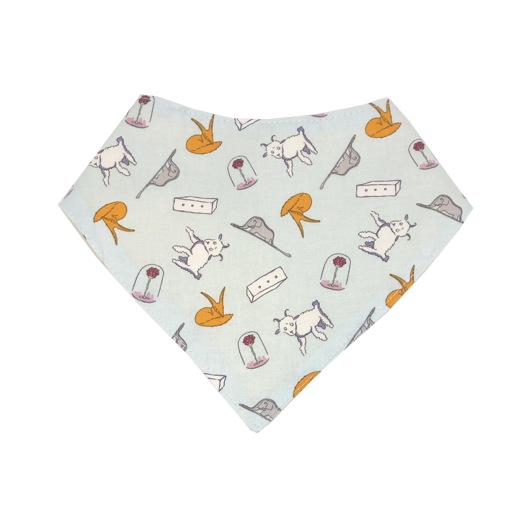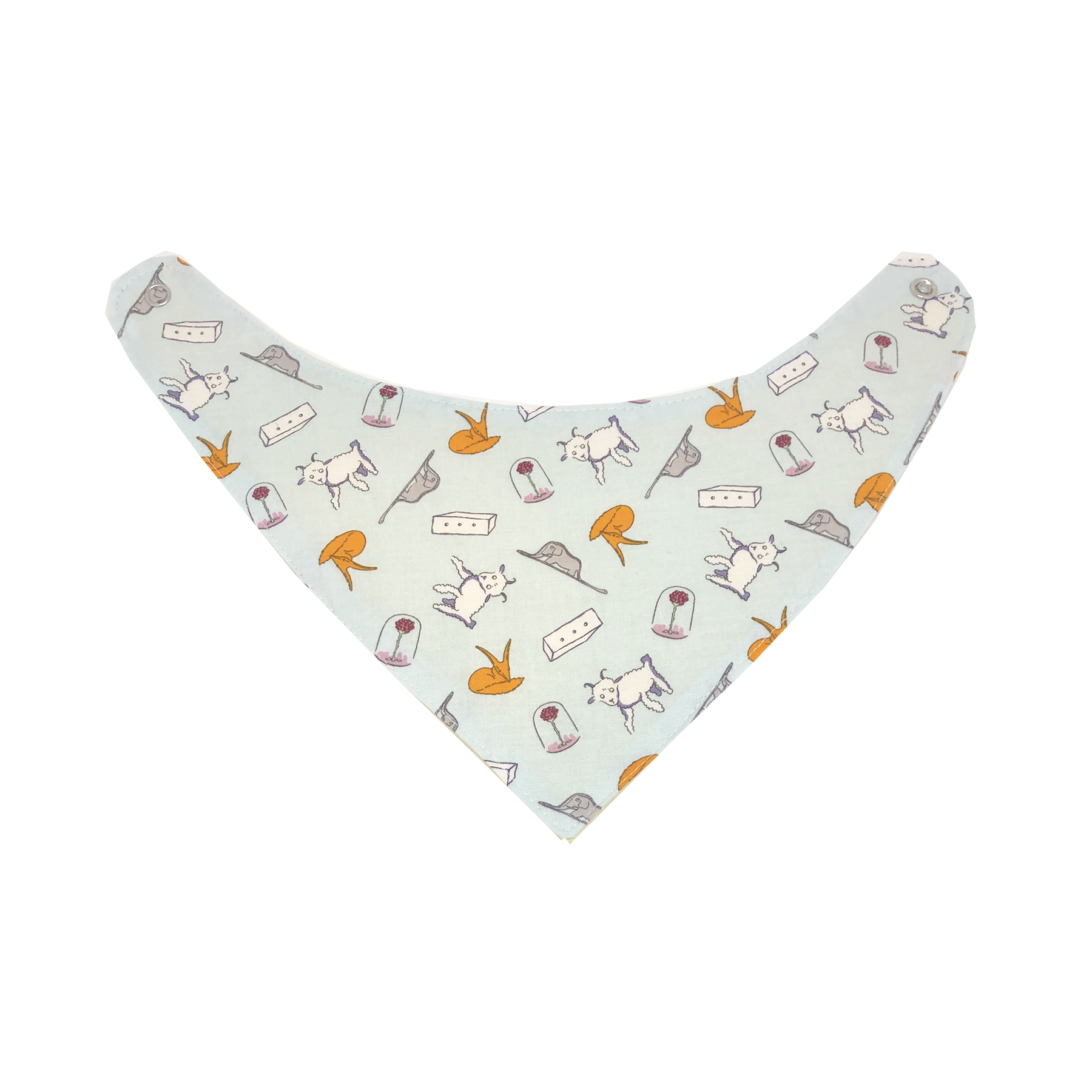 this bandana bib is made with 100% cotton novelty fabric with flannel on the back with snap.