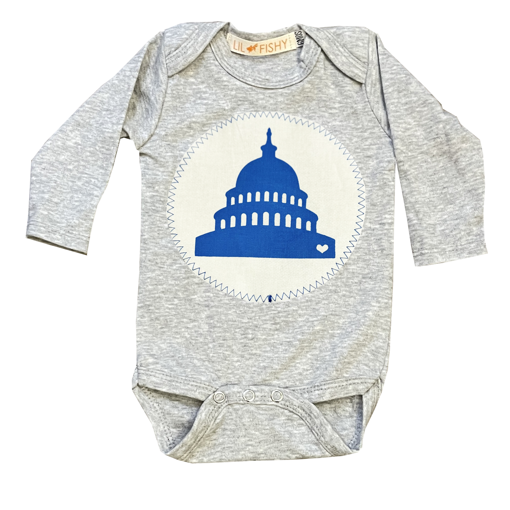 hand drawn silk screen patch on long sleeves heather grey onesies.