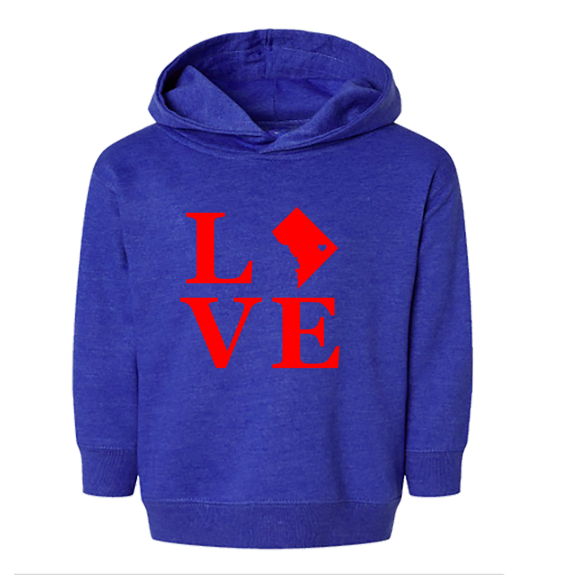 Hoodies with pockets and silk screened our DC LOVE in the front.