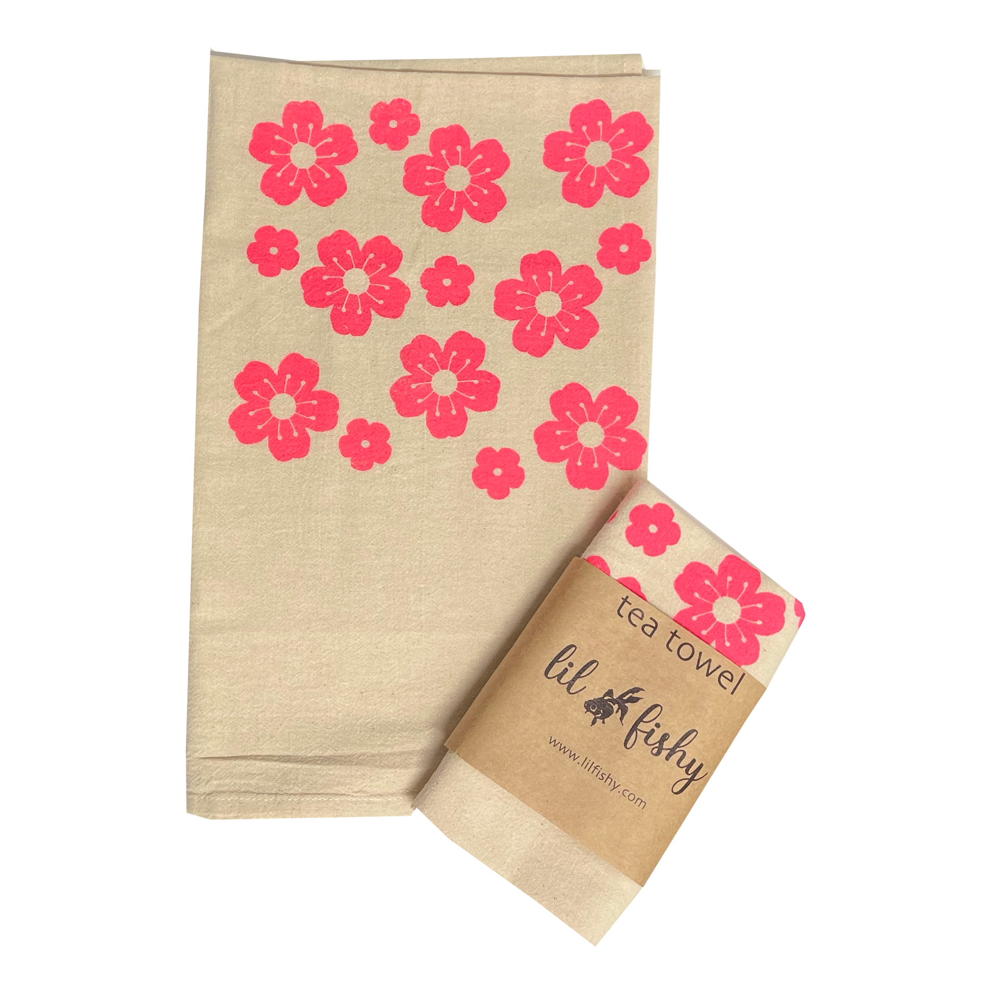 Hand drawn silk screened on the natural flour sacks. They are good for cleaning, and kitchen use.