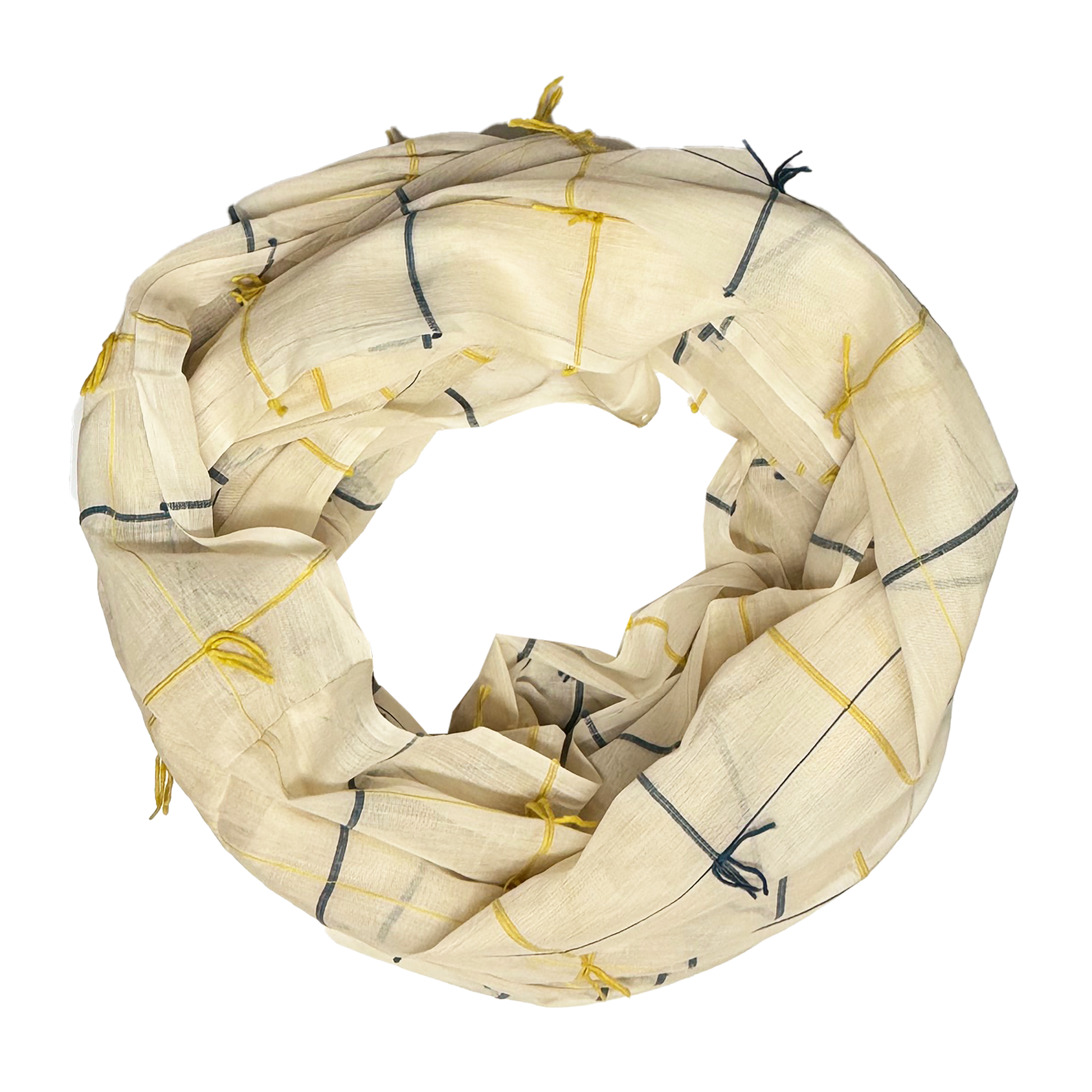 This infinity scarf is made from gauze fabrics sewn at the end.
