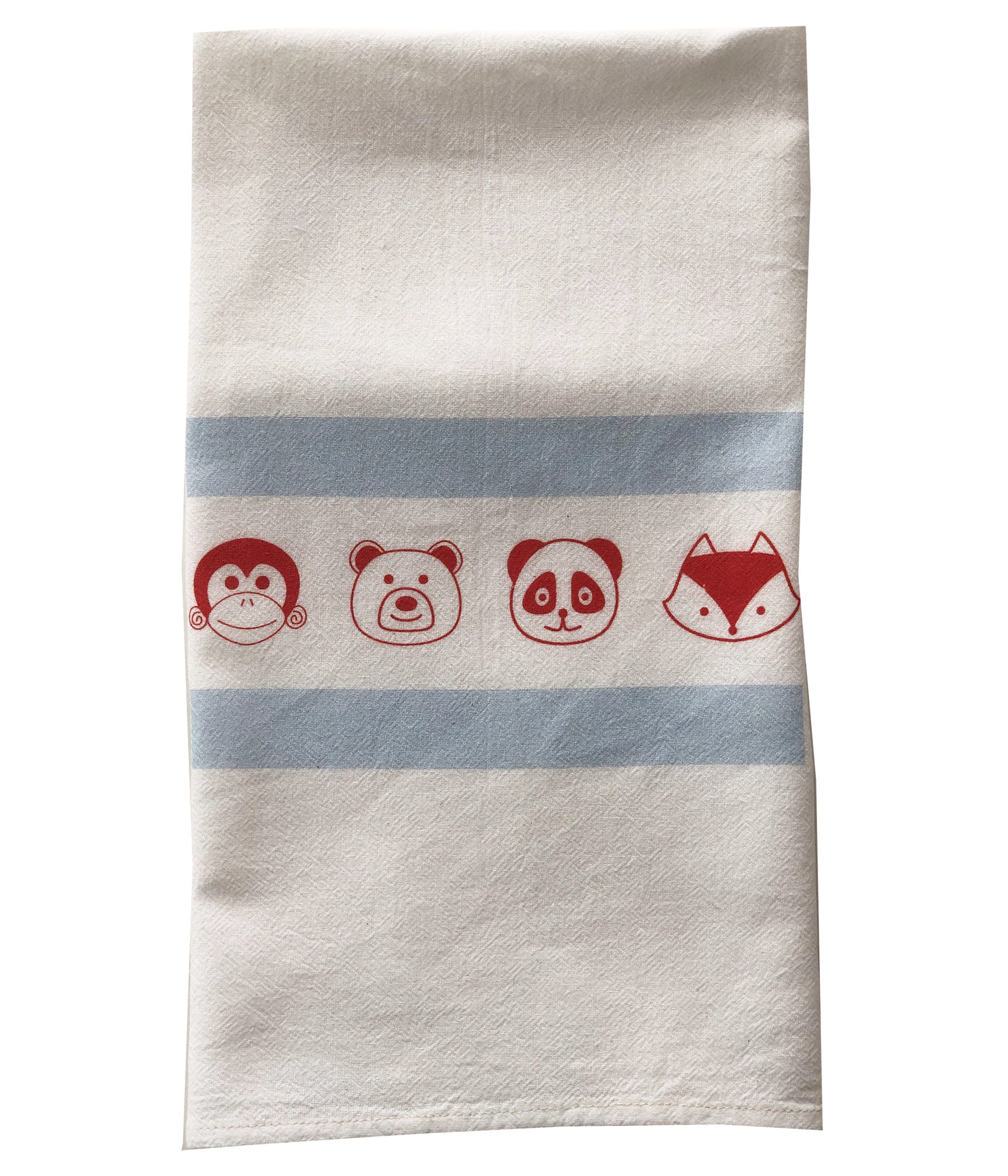 Hand drawn silk screened on the natural flour sacks. They are good for cleaning, and kitchen use.