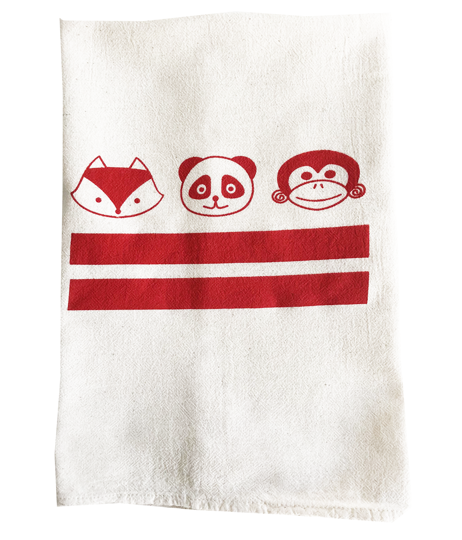 Hand drawn silk screened on the natural flour sacks. They are good for cleaning, and kitchen use.