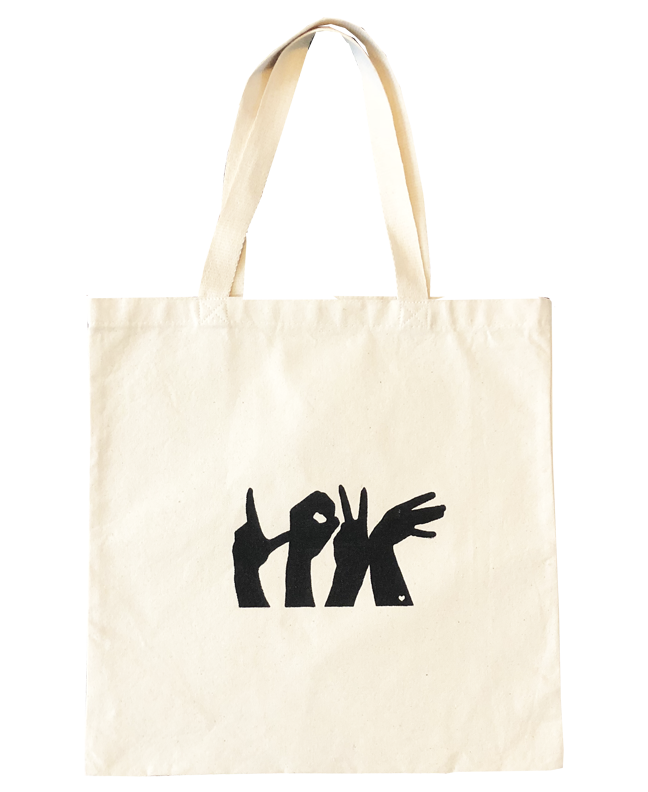 Hand drawn silk screen image on heavy weight canvas tote bag.
